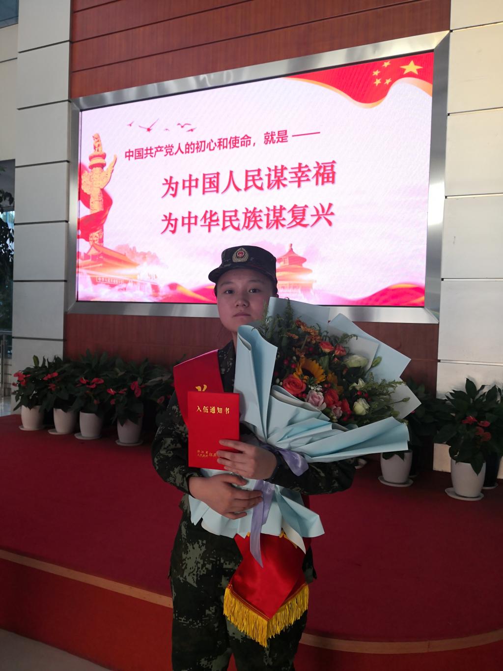 近年来首位女大学生新兵。为成功入伍,她主动休学,积极矫正视力,最终顺利通过体检。