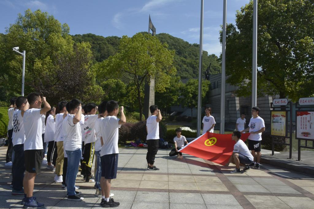 组织全体团学骨干,前往招宝山镇海口海防历史纪念馆和中国防空博览园,开展爱国主义教育活动。活动伊始,全体成员佩戴团徽,高唱《国歌》和《团歌》。在国旗和团旗的光辉映照下,同学们以昂扬的精神风貌,齐声朗诵诗歌《我的祖国》,开展“国旗下的演讲”主题讲演,重温入团誓词。