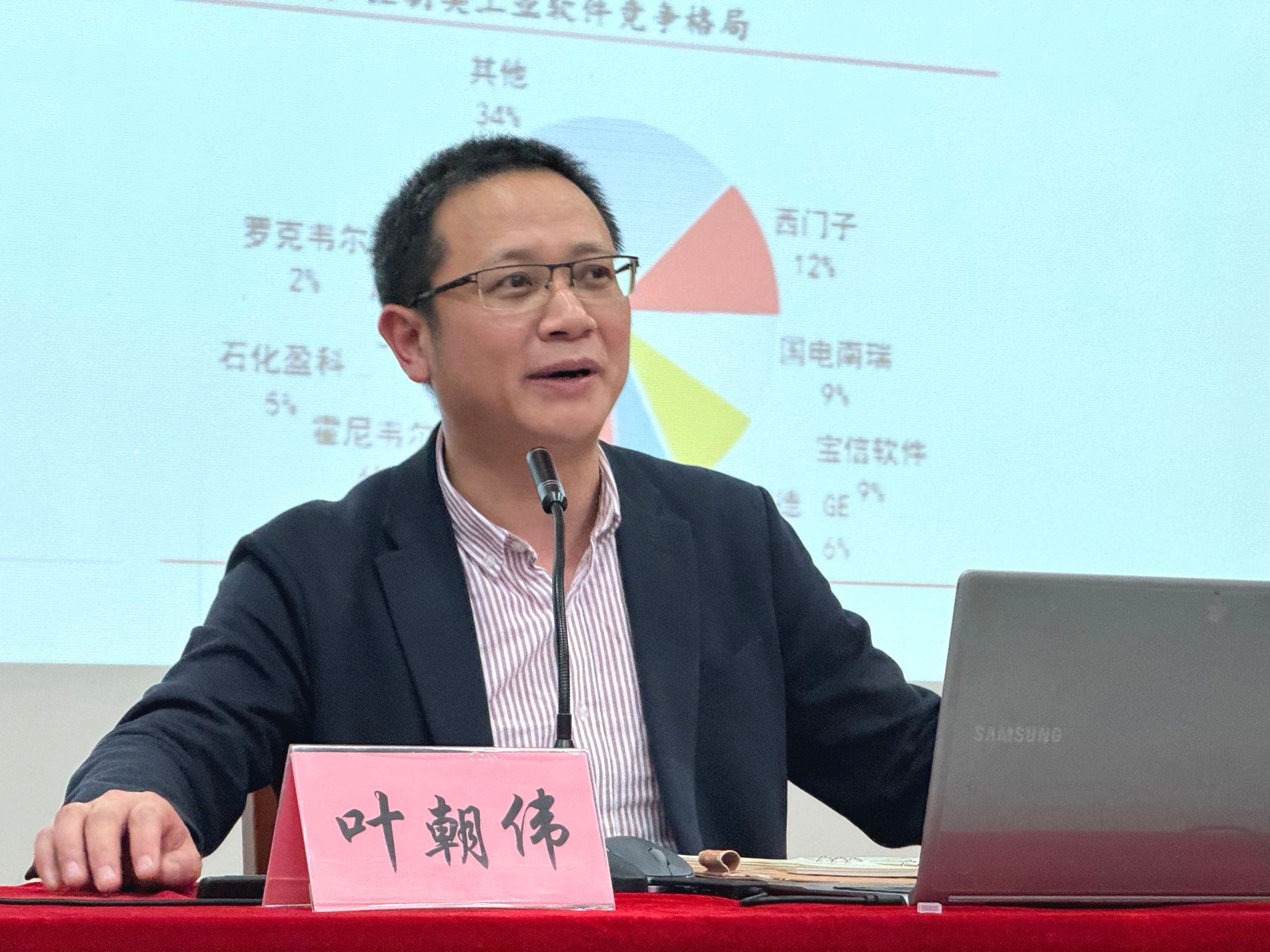 的校友,他指出母校有很好的学习氛围,商文化很重,鼓励同学们要多元化思考未来就业方向,无论是从政从商亦或搞科研。他回顾自身从“0-10-1”的创业经历,提出了对“创”的看法,告诉同学们创业需要勇气,要注重系统探索,把“创”字写圆了。随后,叶总指出工业软件更重要的是“工业”二字,从机械和力学专业出发,他对工业软件的定义、分类,当前发展现状和不足,未来工业软件的发展方向做出独到而富有洞见的分析,指出工业软件被国外垄断的现状,中国人亟需自行开发工业软件,当前国内工业软件方面具有创业的巨大潜力,鼓励同学们花一辈子深耕,为国家工业发展和强盛出一份力。