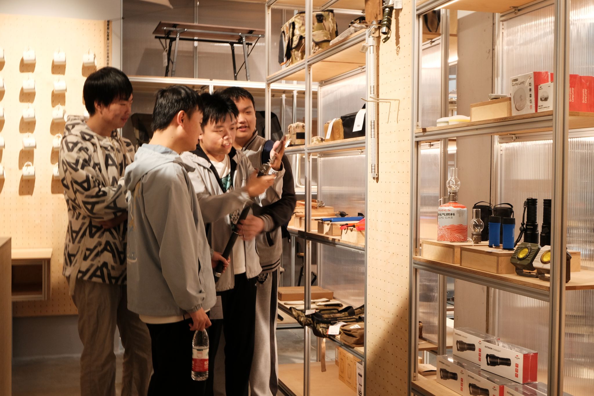 活动第一站,是专注露营装备生产研发的名企挪客户外。刘老师向同学们介绍了挪客户外的产品及其发展历史和发展理念,以户外露营装备的真实体验拉近了和同学们的距离,好看好用,让同学们直呼“种草了种草了”。