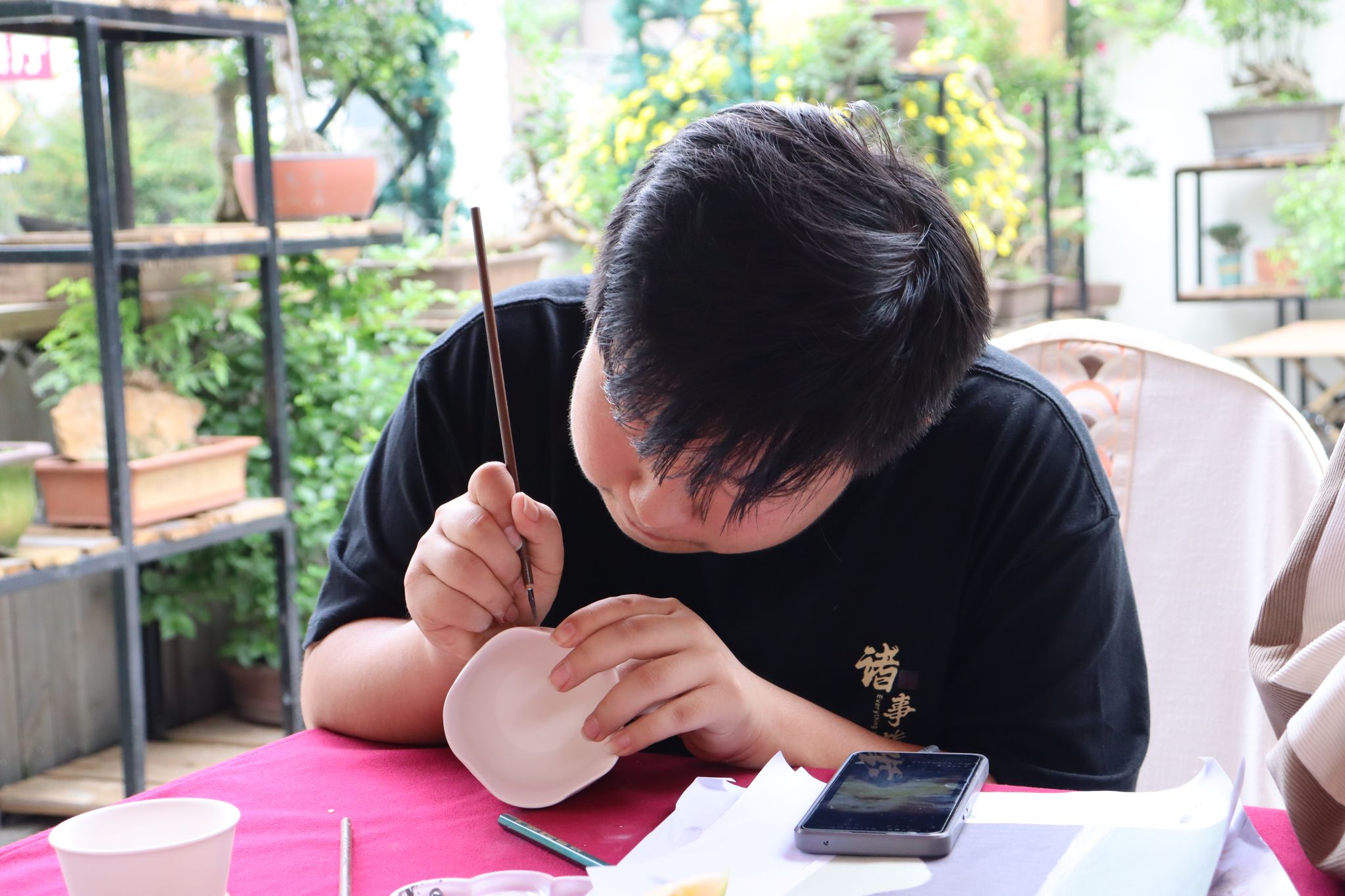 江南丰和院作为本次活动的最后一站,一起手绘陶瓷杯。在沉浸式的欢乐体验中,不仅让同学们了解了瓷器的特征,各类纹饰背后所蕴含的寓意,也感受到了陶瓷绘画所带来的独特艺术体验,展现了中华传统文化的深厚底蕴。