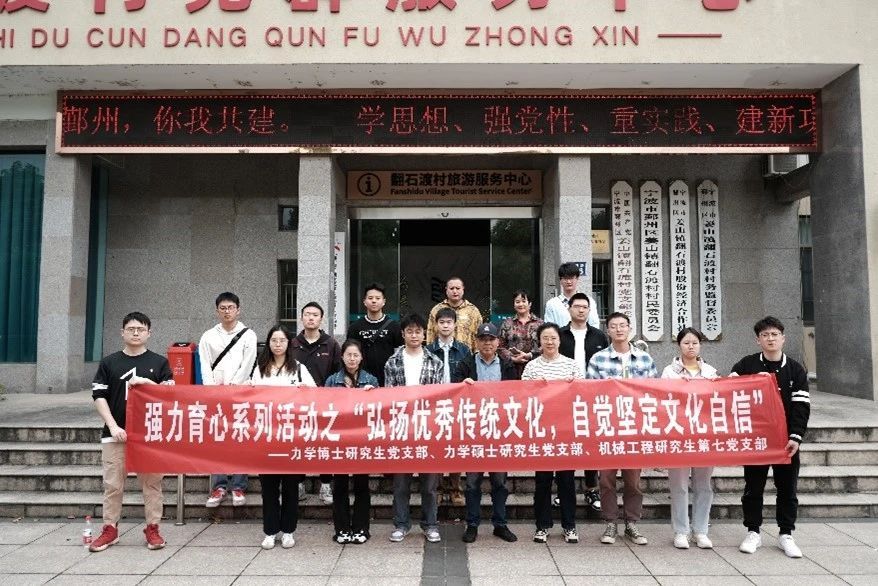 为了深入学习贯彻习近平总书记关于弘扬传承中华优秀传统文化的重要论述,4月25日,力学博士研究生党支部,力学硕士研究生党支部,机械工程研究生第七党支部联合开展了强力育心系列活动之“弘扬优秀传统文化,自觉坚定文化自信”主题党日活动。