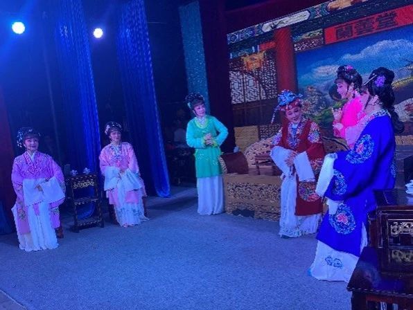 在与剧团负责人的交谈中,党员们了解到,宁波市鄞州姜山翻石渡村越剧团由一群热爱越剧文化,关心越剧发展的文艺爱好者和文艺骨干组成,现有团员42人,基本年龄30岁以上。自成立以来,已经排练了《梁山伯与祝英台》、《五女拜寿》等经典曲目20场,编排上演折子戏若干,创作出了《乡恋》、《情韵》等新型作品,深受观众好评。作为“鄞州区天天演文化惠民工程”演出团队,翻石渡村越剧团经常被邀请到各地开展文化走亲活动,为建设文明村庄增添了丰富色彩,也为创建“文化示范村”奠定了良好的基础。
