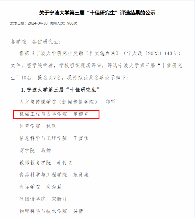 第三届“十佳研究生”10名,提名奖7名,U体育网