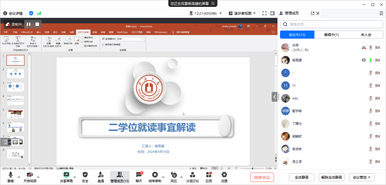有关二学位的招收专业与计划、学生申请要求与流程,以及录取原则和具体的学籍住宿管理等内容进行了详细的介绍,鼓励同学们积极主动地寻求帮助和支持,共同度过学习生活中的每一个阶段。说明会还邀请2023级工程力学(第二学士学位)班的两位同学作在线分享。刚刚考取浙江大学机械工程专业杨高健学长分享了自己在第二学位就读期间的宿舍安排、课程安排以及如何与考研协调等方面的经验和见解。他详细介绍了如何合理安排时间,兼顾学业和考研准备,以及如何有效应对课业压力,为同学们提供了实用的建议和方法。考取U体育网