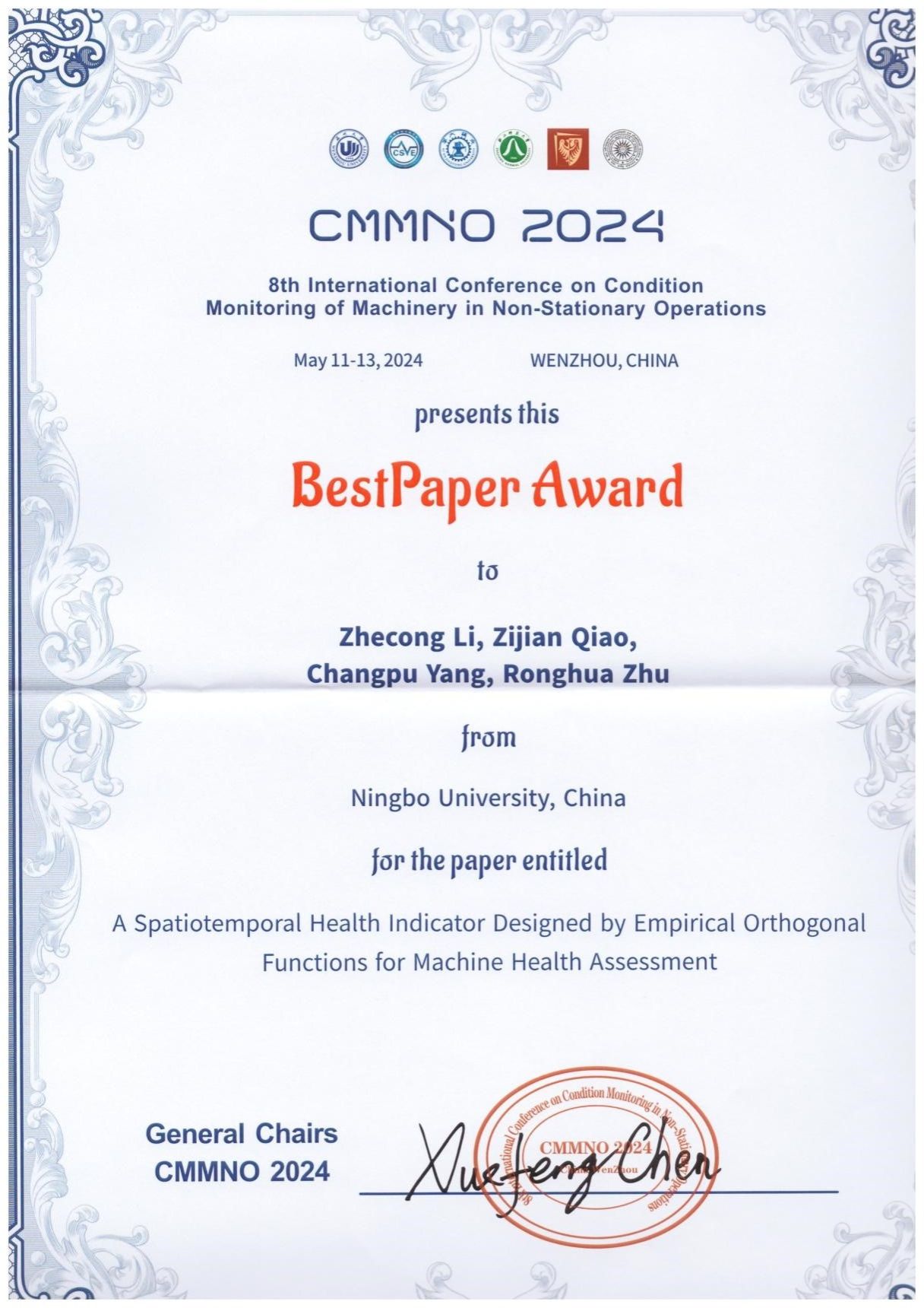 Best Paper|谯自健老师课题组参加国际学术会议CMMNO2024并获奖