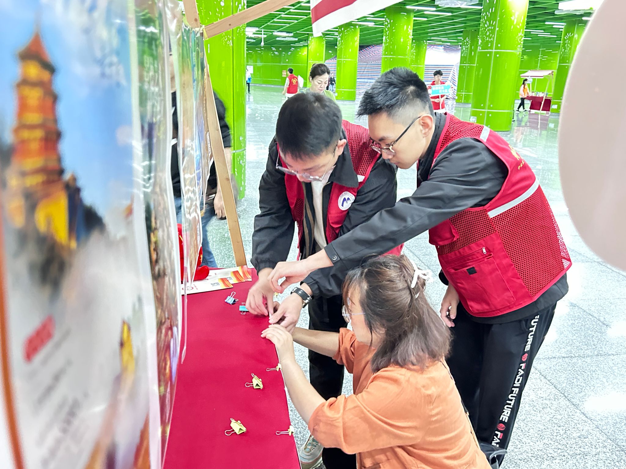 的志愿者们提前一小时到达现场,协助主办方将活动所需物资和摊位相关道具运送到室内场地,并场地进行合理布置和道具摆放。活动开始,志愿者们在每一个摊位开展丰富多彩的如“看明信片猜地名”、“滴水不漏”、“国风体验站”、“消费权益视力测验”等有趣的小活动,告诉孩子们游戏规则并且为挑战成功的小朋友发放奖品。孩子们在志愿者和家长的陪伴下,尽情享受着游戏的乐趣。他们或在亲子游戏区互相追逐、嬉笑打闹,或在手工制作区发挥创意、制作精美小礼物,或在公益知识问答区学习新知识、展现聪明才智。每个孩子的脸上都洋溢着幸福的笑容,家长们也沉浸在亲子互动的欢乐中。