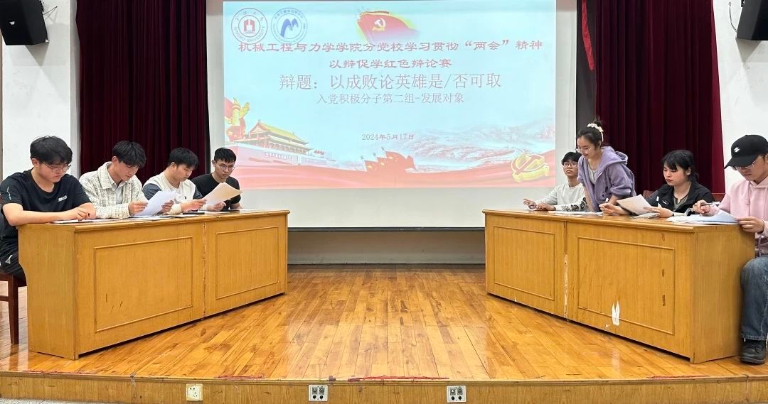 分党校于5月17日下午在绣山工程楼三楼报告厅举办了“学习贯彻“两会”精神,以辩促学之红色辩论赛”。本次辩论赛共进行了两场,分别围绕“有遗憾/没有遗憾的青春才是完美的”和“以成败论英雄是/否可取”两个议题展开激烈角逐。