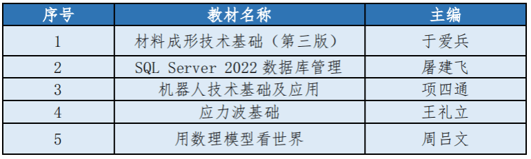 阮殿波、项薇、娄佳、于爱兵、黄海波、屠建飞6位老师申报的6本教材获得立项,其中5项为新形态教材,1项为数字教材。