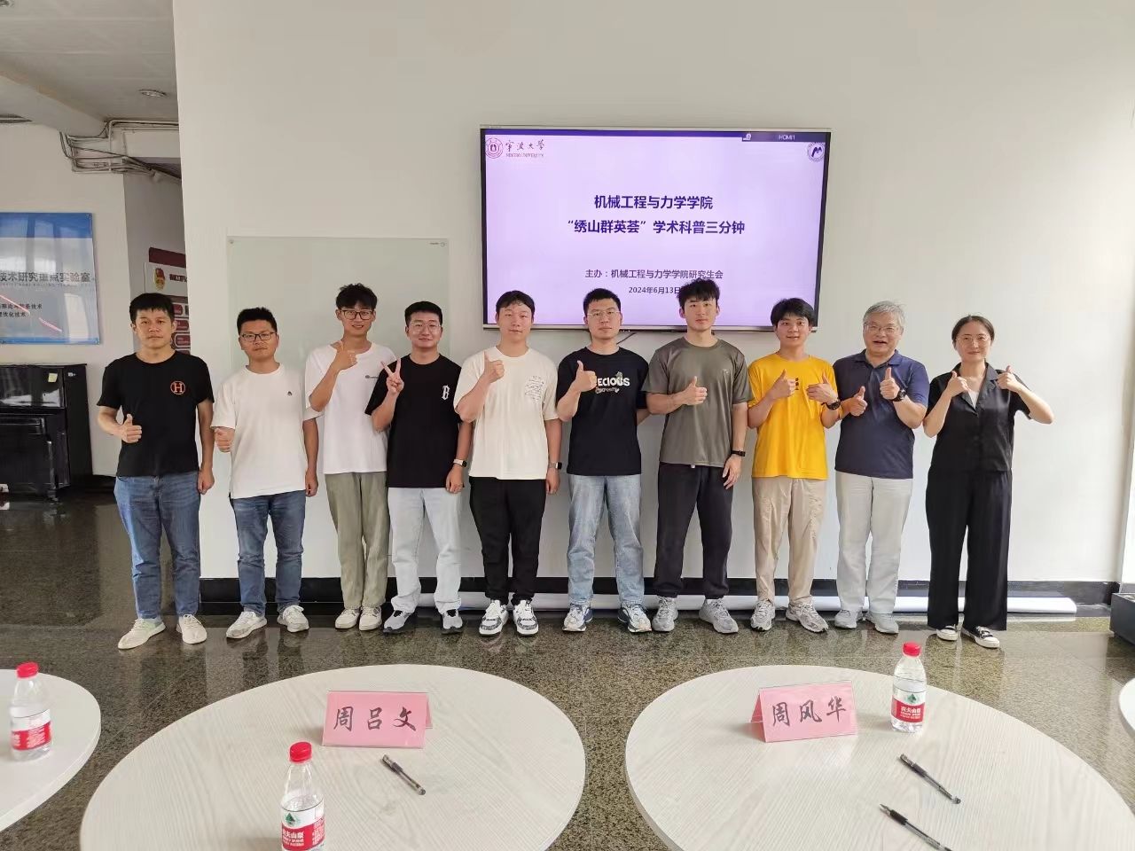 在绣山工程楼一楼大厅组织开展了“绣山群英荟”学术科普三分钟活动,活动由周风华、周吕文、任潞和潘晶婧四位老师担任评审,共6名学生参赛,30名同学现场观摩,其中10名同学担任大众评审。