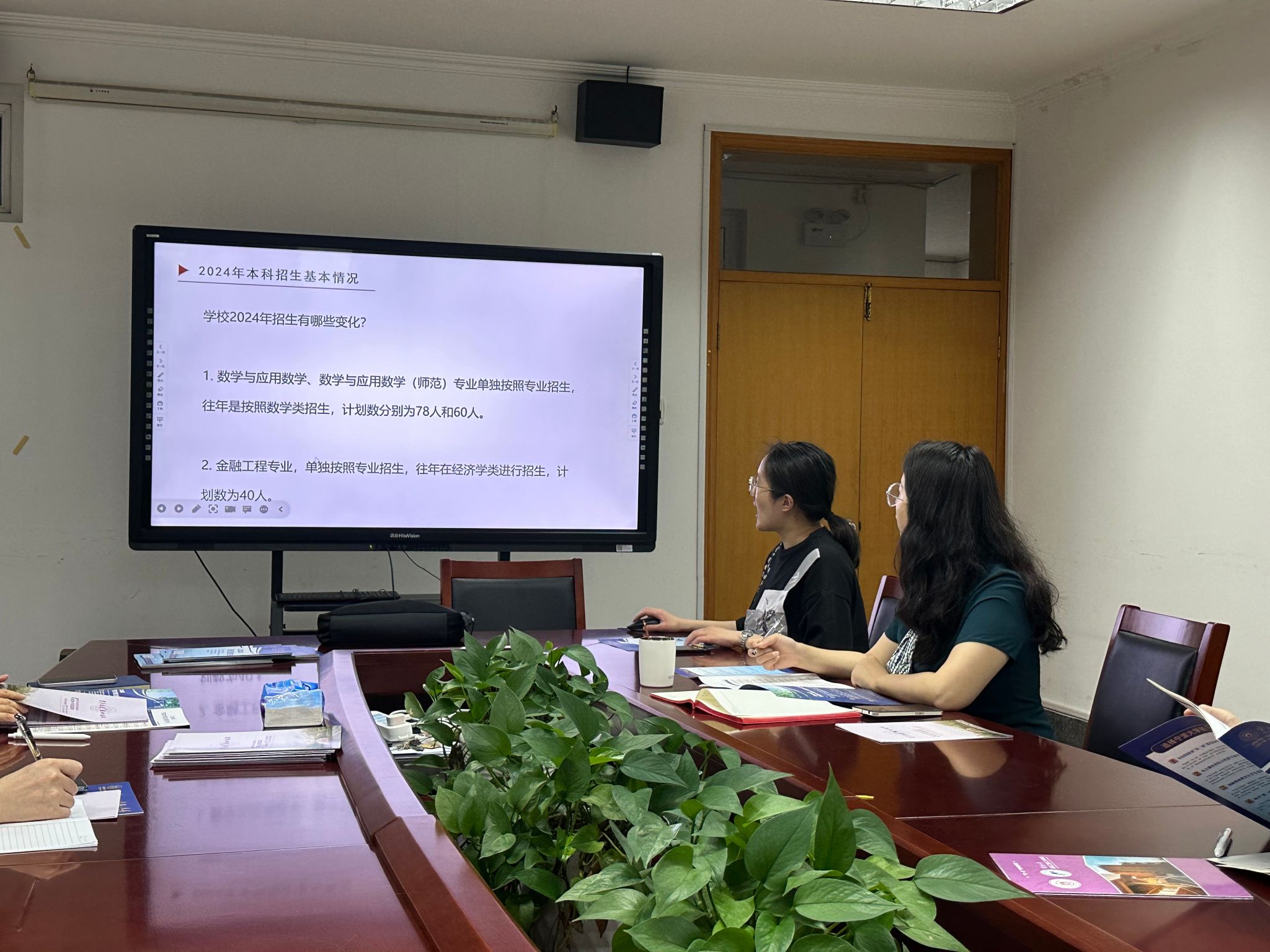 在绣山工程楼举行本科招生宣传培训动员会,院党委副书记沈妍伶、教务办主任张晓娟、各点位招生老师、学生志愿者共二十余人出席会议。