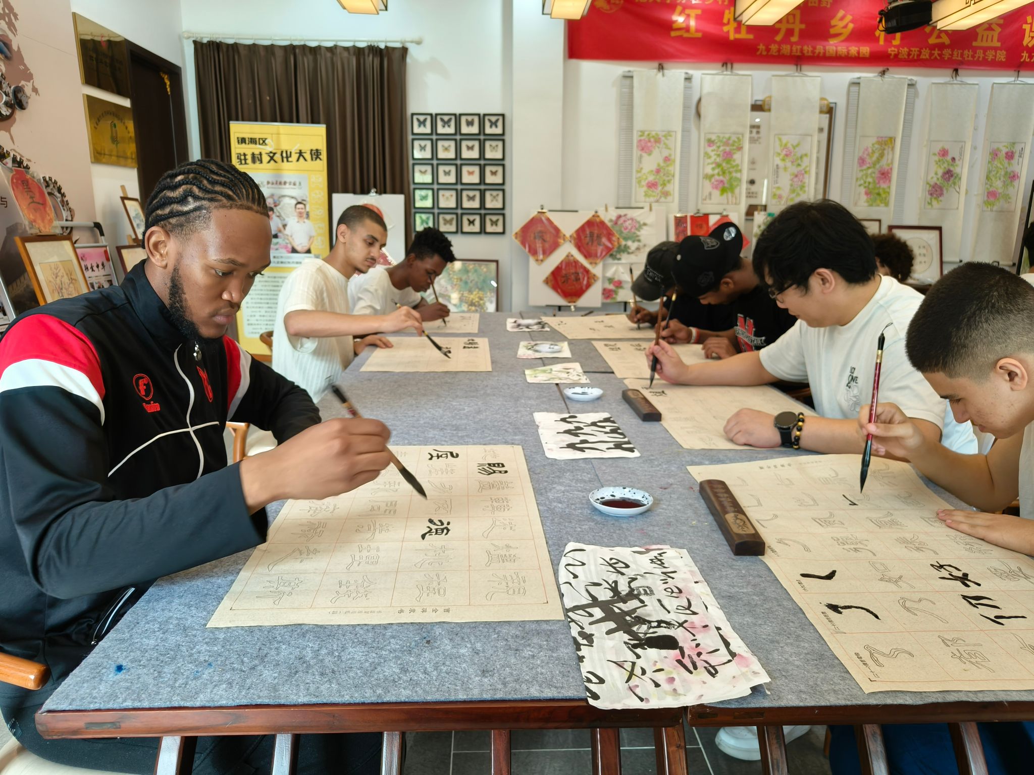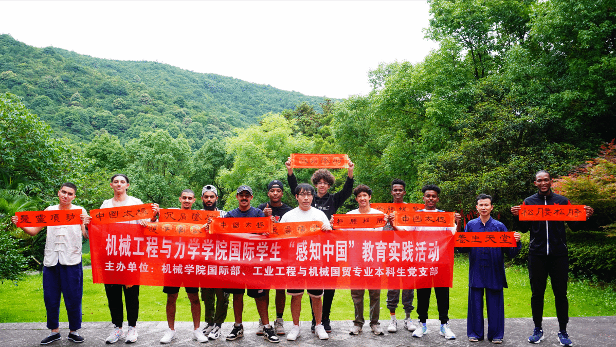 国际部联动工业工程与机械国贸专业本科生党支部走进九龙湖“红牡丹国际家园”,举办“感知中国”教育实践活动,带领10余位中外学生学习书法与太极,感受中国文化,领略山水诗情。