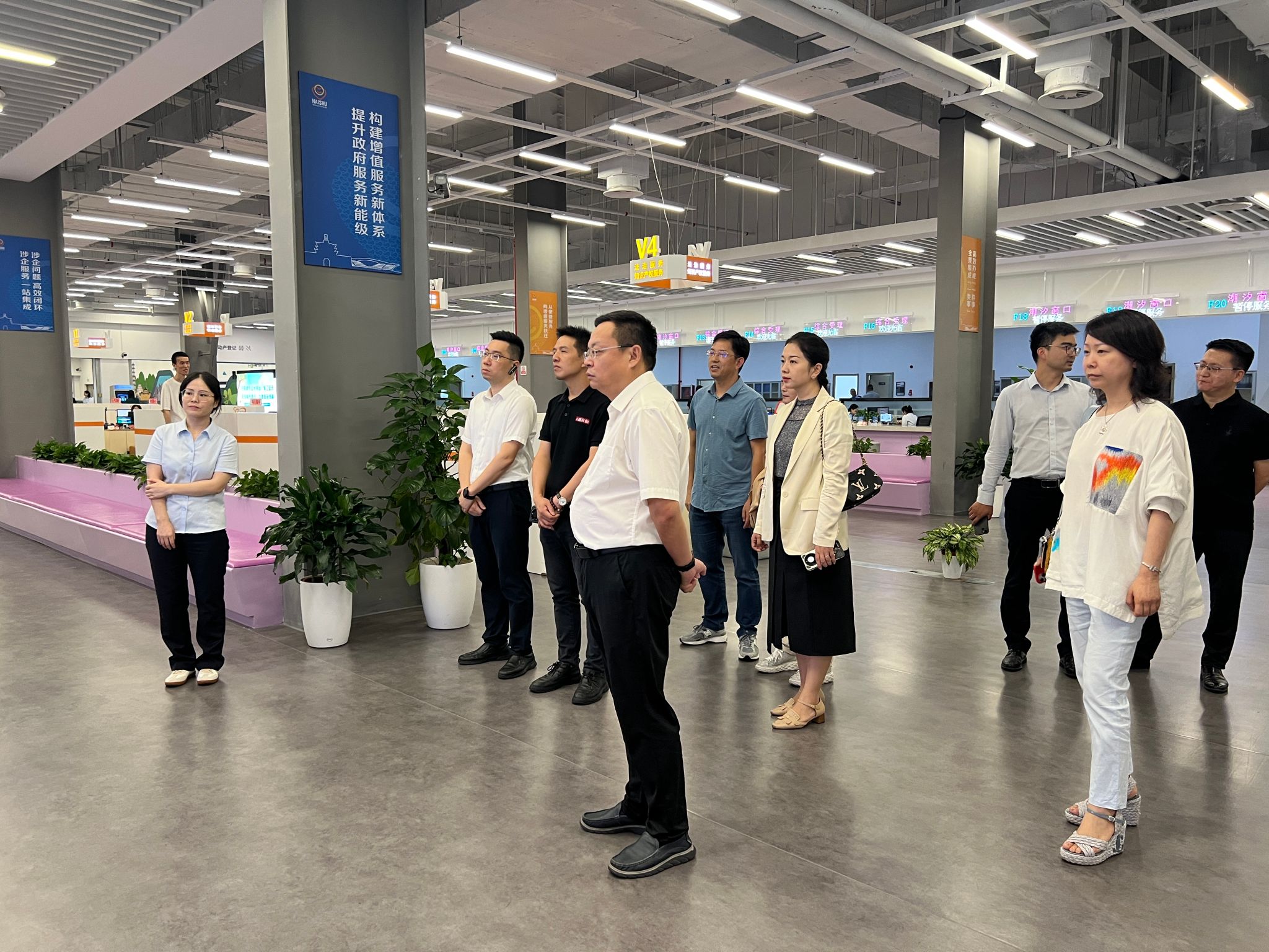 岑亦波校友热情接待,介绍了政务服务中心的高效运行机制与“27度暖心服务”理念。智慧政务大厅的建立,实现了窗口服务的精简与效率的双重飞跃。88%的窗口实现全科受理,99.99%的办件获得好评,这一系列数据背后,是中心对技术创新的不懈追求和对群众需求的深刻理解。自主研发的“智感通”系统,更是让服务响应更加迅速,等候时间大幅缩短,特别是“远程视频帮办”的创新实践,让企业和社区享受到了前所未有的便捷,事项办理范围不断拓展,真正实现了数据多跑路、群众少跑腿的目标。而关于“27度暖心服务”理念,岑亦波这样介绍到:26℃最舒适的体感温度,加1℃是暖而不热的27℃,这1℃是从“最多跑一次”到“一次都不跑”的舒适加1,是从“常规服务”到“超出期待”的增值加1,是从“千年一遇”到“千篇一律”的“无感”加1。服务中心通过智能化、人性化的服务举措,让每一位来访群众感受到家的温暖与便捷,真正实现从“只跑一次”到“一次都不用跑”的飞跃,赢得了在场校友们的由衷赞叹。