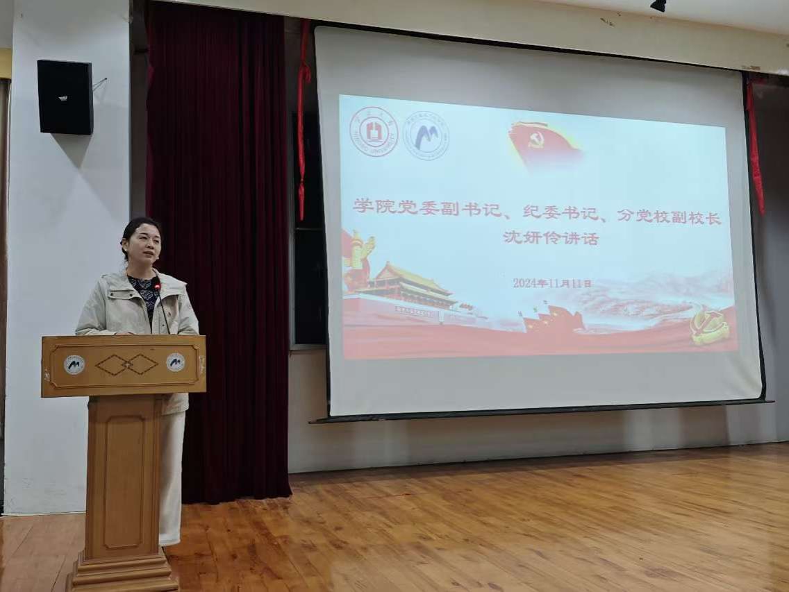 党委副书记、纪委书记、分党校副校长沈妍伶发表了讲话,她以陈大年教授获颁“我国第一颗原子弹爆炸成功60周年纪念章”为切入点,详细阐述了U体育网