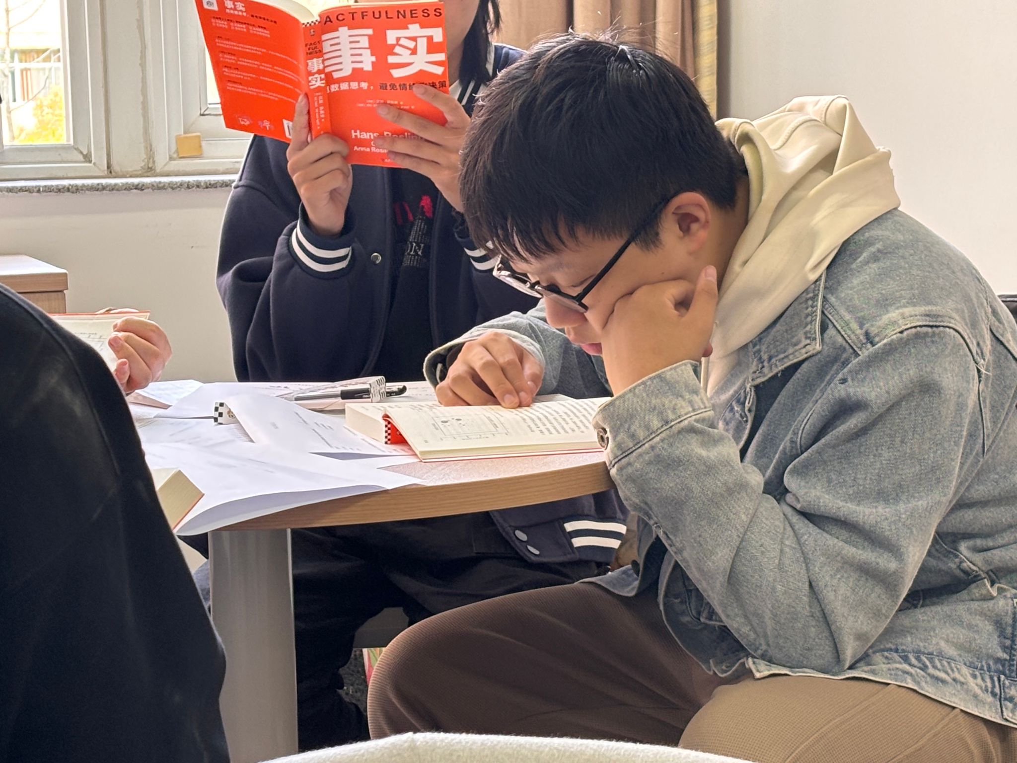 谢老师以幽默的开场,生动地讲解了“一分为二”观点的偏见、落后知识对现代社会的影响,这些影响和人的学历没有多大的关系,无论是政界精英、商人还是学生,都会习惯地以自己的角度看问题。不仅如此,谢老师还领读了如何避免“以偏概全”“情急生乱”“单一视角”等等章节,简单明了地教会了大家如何使用这本书。同学们认真学习,频频落笔批注。