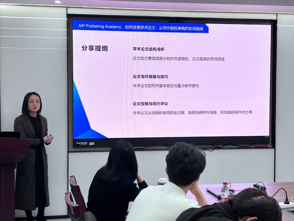 12月5日下午,美国物理联合会出版社(AIP Publishing)李颖博士应U体育网 机械U体育网 极端环境交叉力学研究中心邀请,于龙赛理科楼南楼519会议室开展了主题为“如何发表学术论文:从写作到投审稿的实用指南”的学术分享会,旨在帮助同学们更好地理解和掌握学术论文发表流程。陈晖教授主持了本次分享会,U体育网 学生积极参与互动。李博士从期刊的视角出发,分享学术论文出版的完整流程,涵盖科技论文写作和投稿过程中的关键注意事项。主要围绕“学术论文结构解析”“论文写作流程”“论文投稿与同行评议”三个方面展开,探讨学术论文的结构与逻辑,分享如何有效地搭建论文框架;并通过具体的案例分析与实践经验分享,帮助学生了解学术论文的基本写作规范与重点章节的撰写技巧;以及从期刊视角,详细介绍学术论文从投稿到录用的全过程,包括如何准备投稿材料、如何跟踪稿件状态,并了解如何有效应对审稿人及编辑的反馈等。李颖博士的精彩分享,不仅加深了同学们对学术论文写作和投稿流程的理解,更提供了许多宝贵的经验和建议,为同学们未来的学术道路指明了方向。