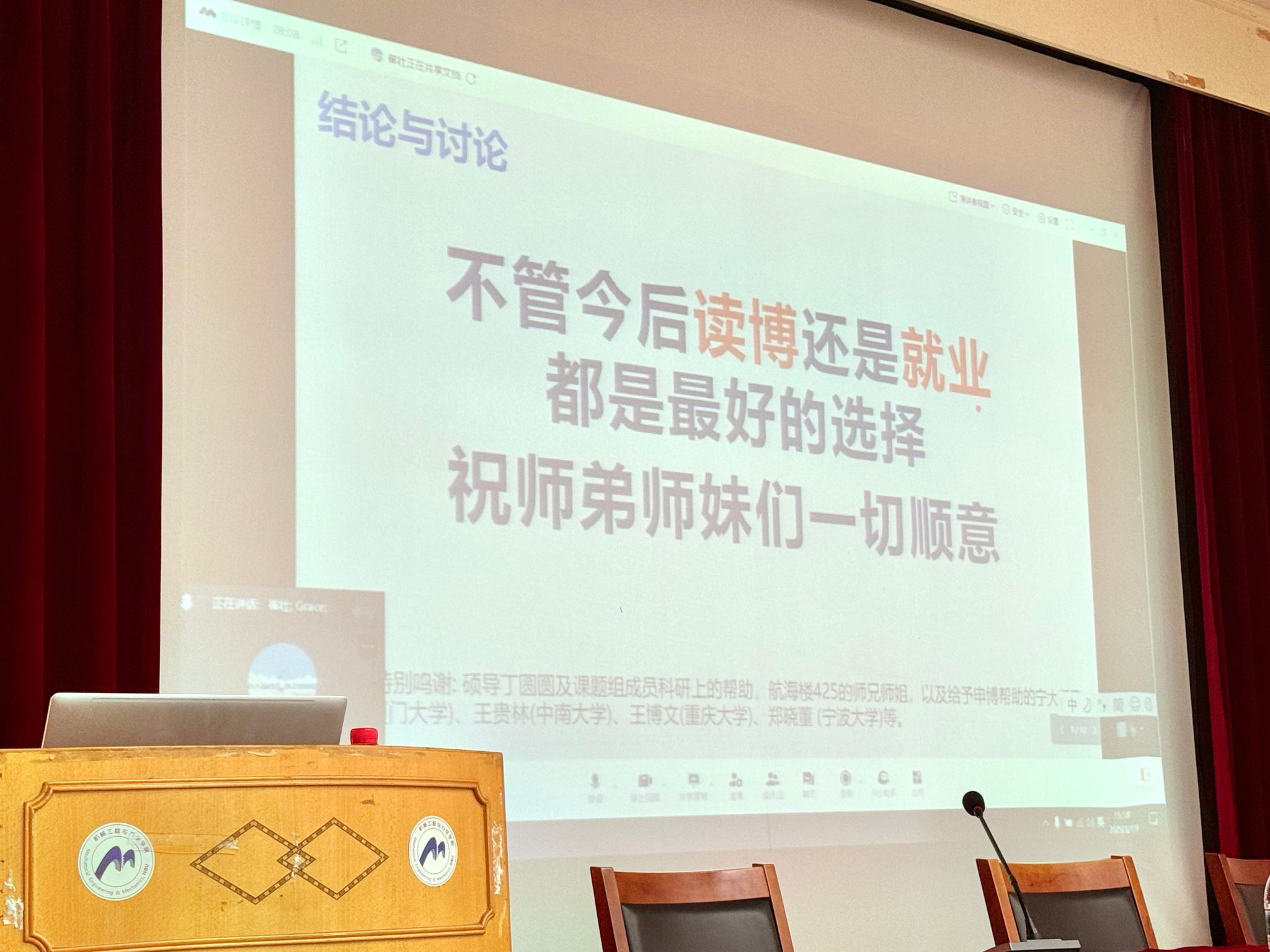 第一位分享者是读于浙江大学的崔壮学长,他对考博形势、读博原因、申请流程和材料要求等方面做出详细梳理和解读。他表示目前考博的形势严峻:2025年博士申请竞争加剧,交叉学科、科研转化能力或成为核心加分项。他提醒同学们关注目标院校“隐性门槛”,如论文发表周期与导师课题组动态等。对于申博流程,他强调要进行时间管理,建议提前六个月准备材料、避开导师忙碌期,对于面试模拟要进行针对性演练,申请材料需逻辑清晰,突出个人学术脉络与未来规划。最后他寄语学弟学妹们:不管今后读博还是就业,都是最好的选择,祝学弟学妹们今后一切顺利。