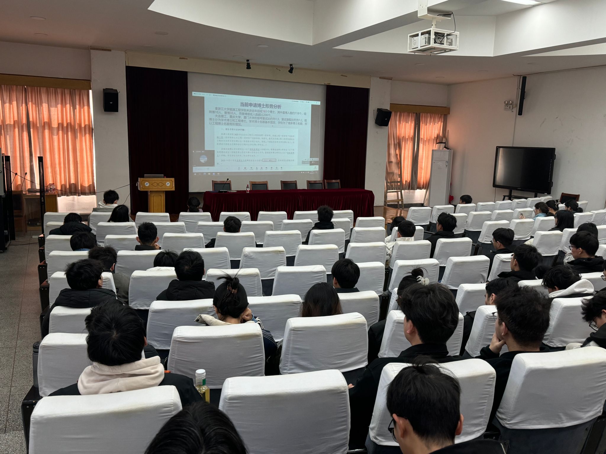 优秀学长学姐考博经验分享会。分享会邀请了崔壮和连晨成两位博士学长主讲,通过线上线下相结合的方式开展,研究生辅导员潘晶婧主持,80余名同学齐聚会堂,共同探讨申博策略与学术成长路径。