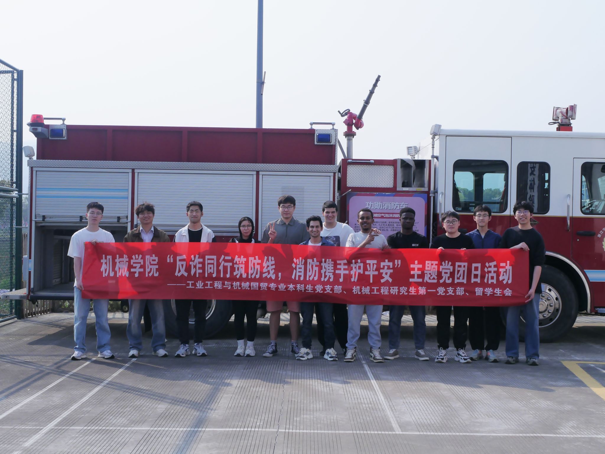 为深化平安校园建设,提升师生安全素养,进一步增强同学们的反诈意识,3月26日下午,机械工程研究生第一党支部、工业工程与机械国贸专业本科生党支部联合留学生会,赴古林镇全域平安体验中心开展“反诈同行筑防线,消防携手护平安”主题党团日活动。通过实地参观、专题讲解和真实模拟体验三个环节,增强同学们的反诈意识,提升消防知识水平,共计15名中外师生共同参与此次沉浸式安全教育实践。