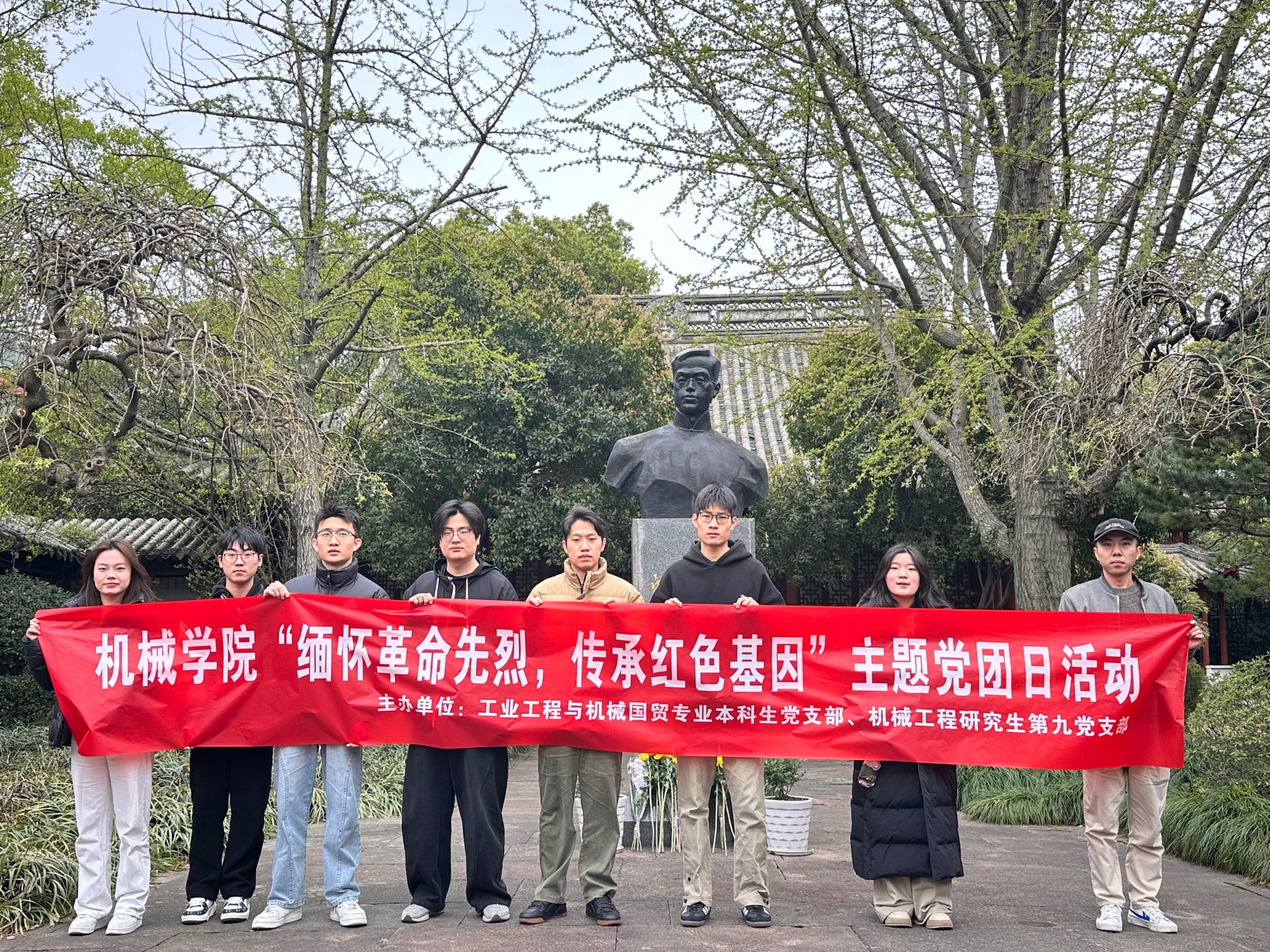 学生党支部联合镇海区“戎光”宣讲团与红星志愿服务队、车站路社区退役军人服务站,赴陈寿昌烈士纪念馆开展“缅怀革命先烈,传承红色基因”主题党团日活动,工业工程与机械国贸专业本科生党支部、机械工程研究生第九党支部共同参与。