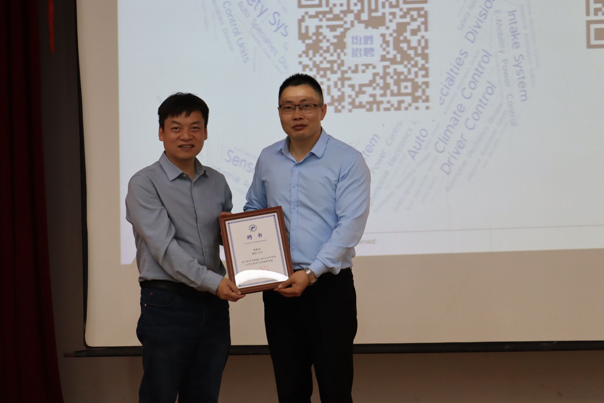 为谢炜经理颁发导师聘书。