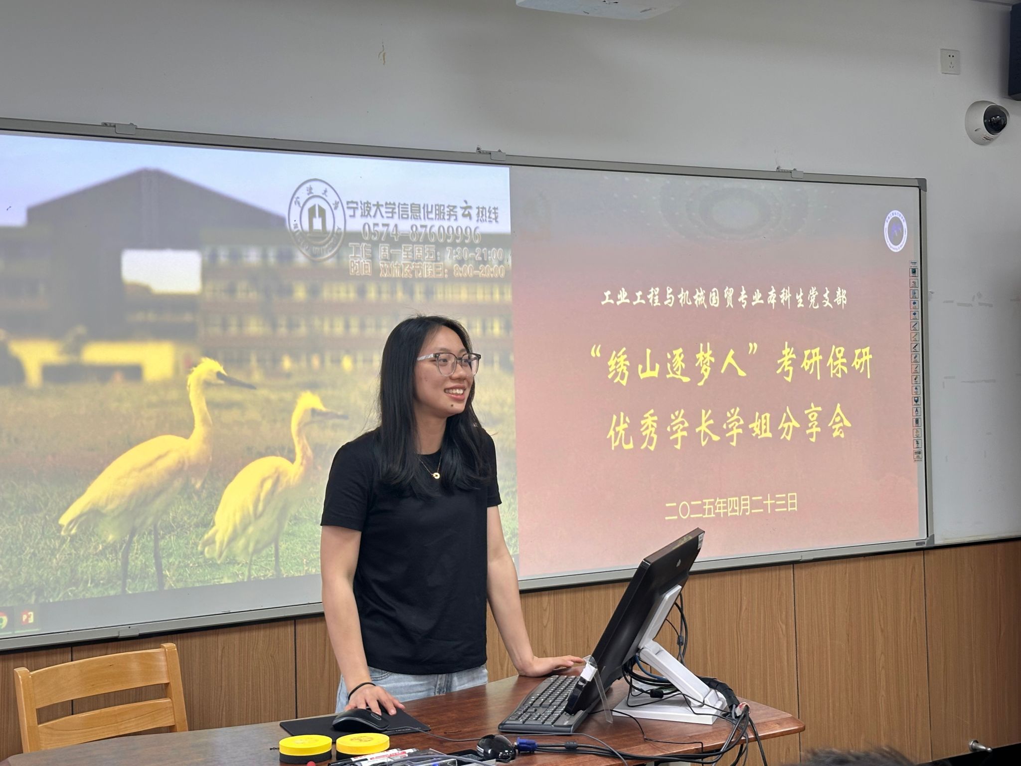 为充分发挥优秀学子的榜样引领作用,帮助同学们明确学业规划,提升升学竞争力,4月23日,工业工程与机械国贸专业本科生党支部成功举办“绣山逐梦人”考研保研优秀学长学姐分享会。本次活动围绕考研保研的目标选择、推免准备等展开深度解析,支部30余名党员与积极分子积极参与。