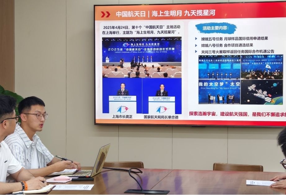 值此第十个“中国航天日”主场活动在上海举办之际,双方首先共同学习了习近平总书记关于中国航天事业的重要讲话论述,结合“艰苦奋斗、协同攻坚、勇攀高峰”的航天精神内涵,立足自身科研实践经历深切谈到:科研同样需要咬牙坚持、攻坚克难,在面对模型发散、实验失败等问题时,更需要发扬“特别能战斗”的攻坚作风,把科研报国的初心使命转化为突破技术难关的持久动力。