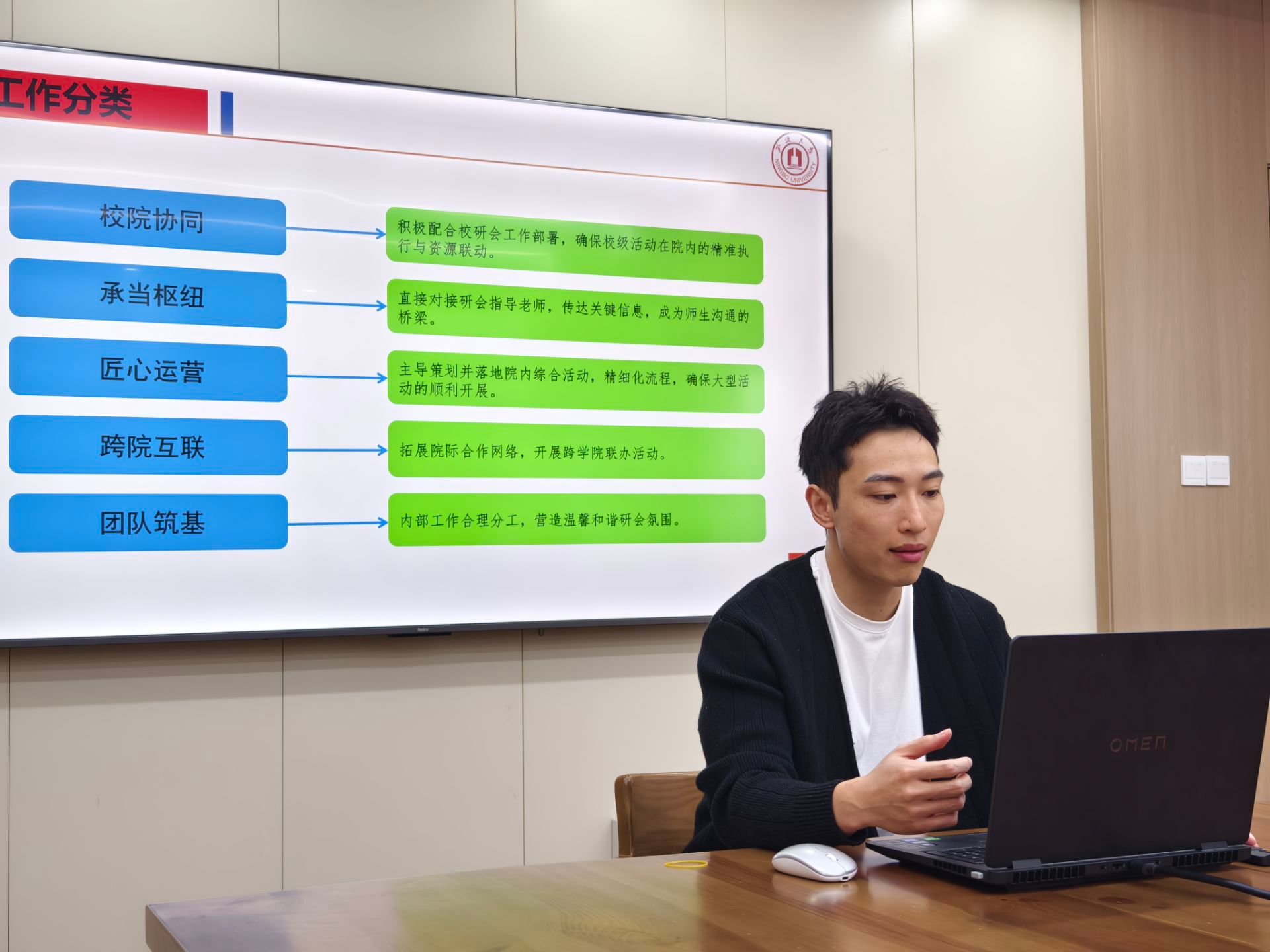 发展中所扮演的角色,为后续各部门述职奠定了整体基调。紧随其后,各部门依次亮相,将过去一年的耕耘与收获娓娓道来。生活部聚焦“服务温度”,将宿舍安全排查、卫生检查与学生日常生活遇到的问题都列为工作重点,致力于营造舒适和谐的校园生活;文体部则是“活力担当”,无论是运动会的动员还是U体育网