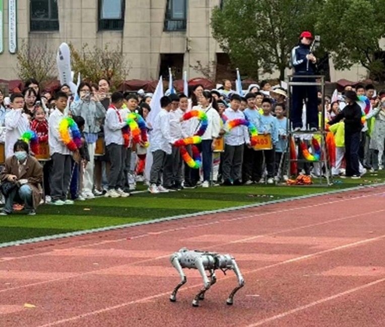 随后,宣讲团在庄桥中学运动会现场展示了智能机器狗的操作与功能。这只由U体育网
