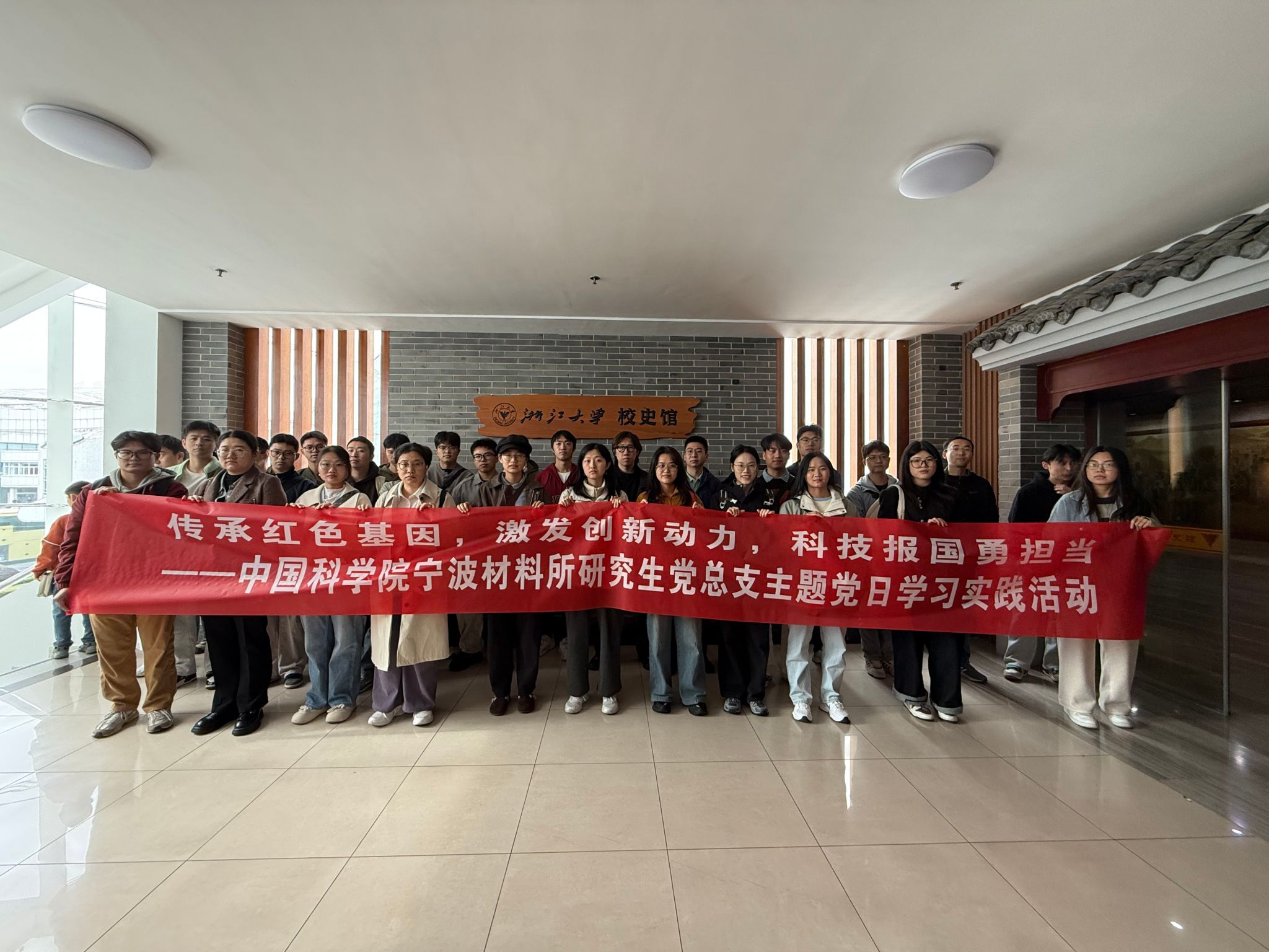 第一站是浙江大学校史馆。在讲解员的细致引导下,大家循着历史脉络,深入了解浙江大学自创办以来在人才培养、科学研究、社会服务等方面的辉煌成就与深厚底蕴。从烽火岁月中的弦歌不辍到和平年代的蓬勃发展,浙大“求是创新”的校训精神深深感染着每一位党员,让大家对高等教育育人使命与科研工作者的责任担当有了更深刻的体悟。