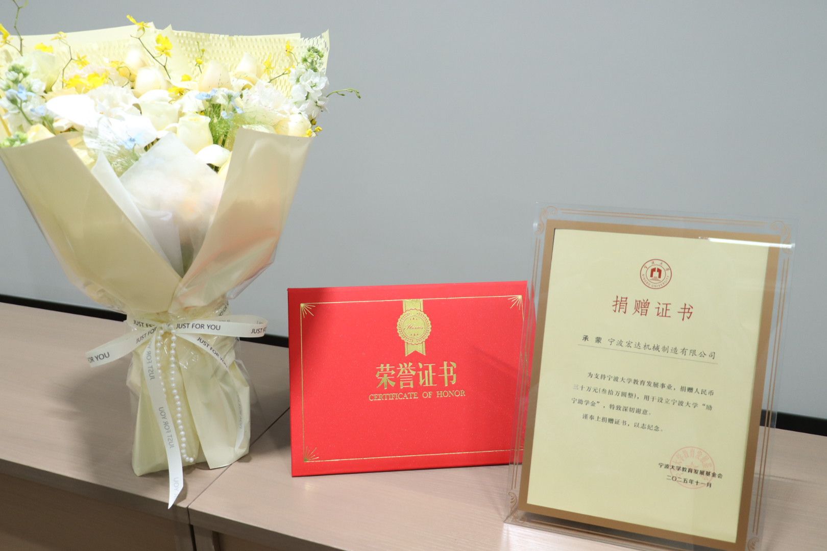 “励宁助学金”捐赠仪式在宁波宏达机械制造有限公司温馨举行。宁波宏达机械制造有限公司总经理张萍、励岷翰,U体育网