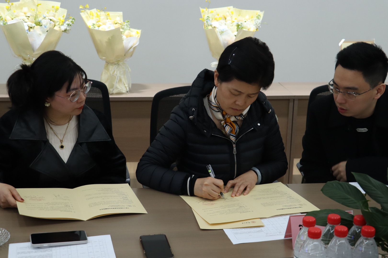 讲话结束后,张萍女士签署了捐赠协议,正式确立了新一轮的资助合作。为表达由衷的谢意,受助学生代表向张萍女士、励岷翰先生敬献了鲜花,沈妍伶副书记则代表U体育网