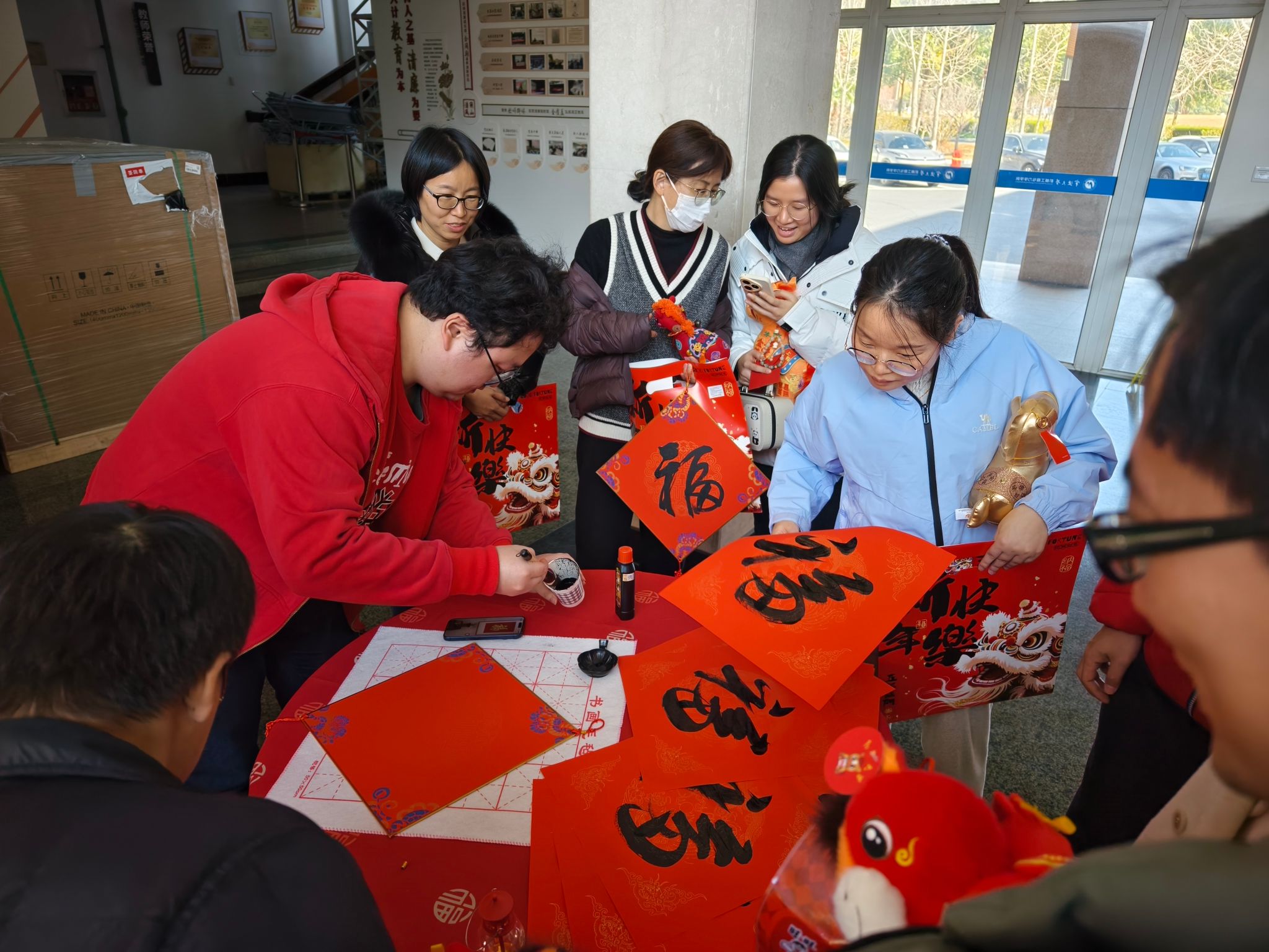 对老师们的新春祝福。写“福”现场墨香氤氲,师生们挥毫泼墨,笔锋苍劲有力,于笔走龙蛇间勾勒出对新年的美好期许。套圈赢礼区更是热闹非凡,大家屏息凝神、瞄准投掷,只为赢取那可爱的小马福娃娃,尽显童趣。而现场氛围组也是十足卖力,喝彩声、欢笑声此起彼伏,将活动氛围推向一个又一个高潮。
