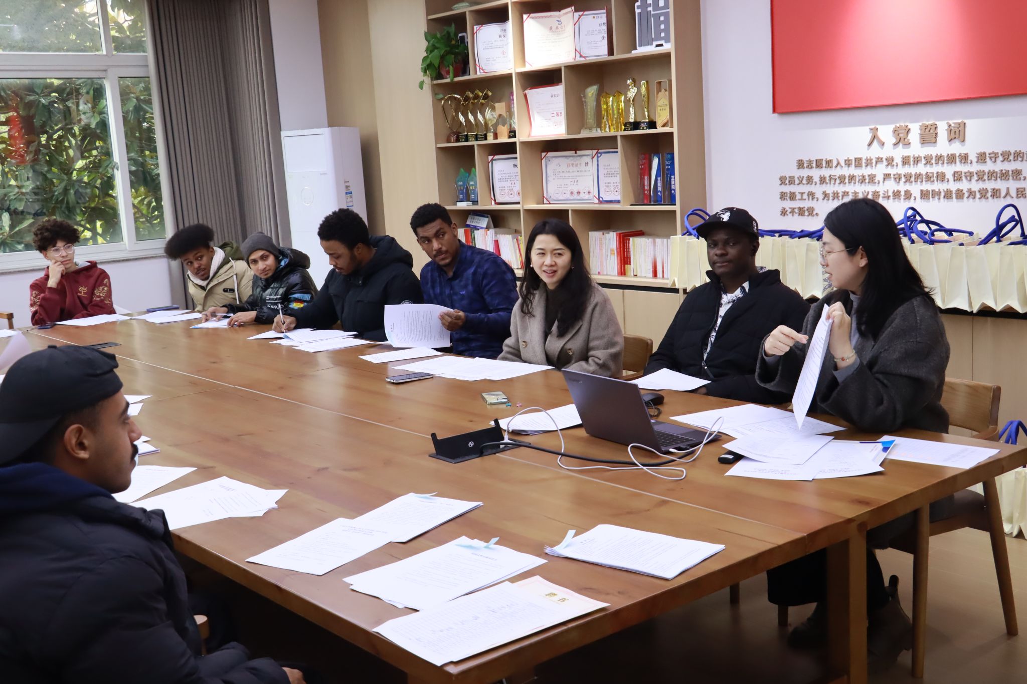 高度重视国际学生的生活、学习、安全等情况,借此次座谈会了解每位国际学生的生活、学习情况,尤其是对寒假留校的国际学生表达了慰问和安全提醒,保证留校学生度过一个安全、快乐、温馨的假期生活。