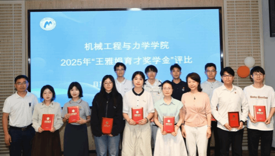 经过激烈的评比最终共有21名同学获得了2025年”王雅娟育才奖学金“并授予机械之星的荣誉称号,由四位“王雅娟育才基金”捐赠校友代表为这21名获奖同学颁发荣誉证书。