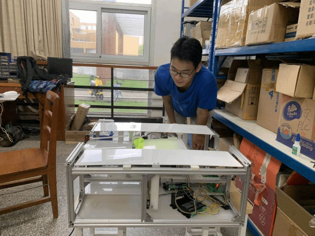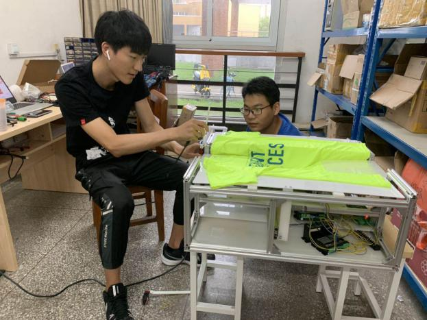 继续学习“单片机”相关内容。经过一个多月的学习,2位同学迎来了新的机遇与挑战,徐东明老师决定让2位同学跟着本科大二的河远松、大三的唐文君,参加此次机械设计竞赛。2位本科学长负责设计出一款辅助型叠衣机,而杨玉龙、唐孝迪则负责将机器用到的8个电机通过2个按钮,实现各种设计的功能。