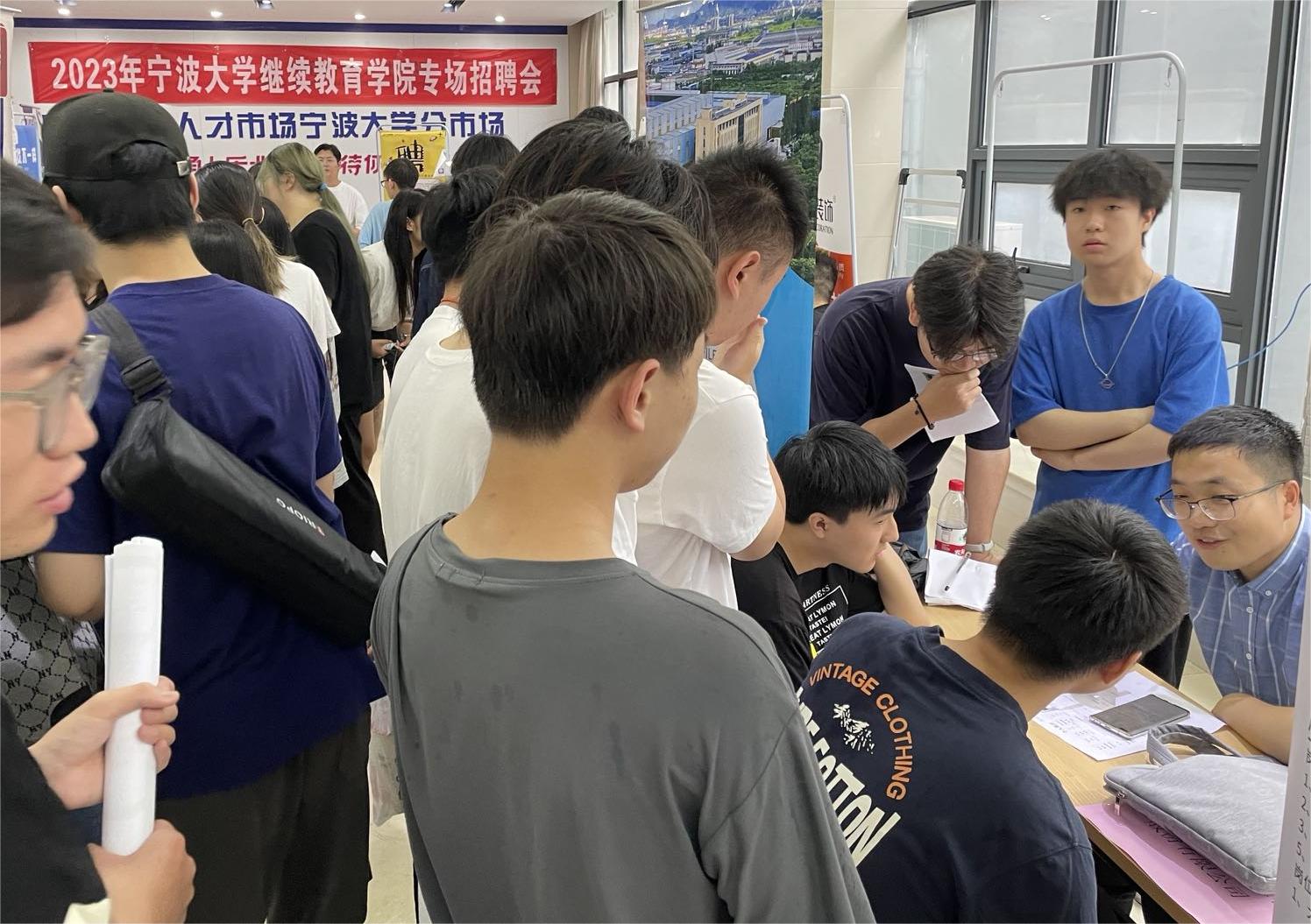 专场招聘会”的现场,在镇海石化建安工程股份有限公司的摊位上,学员们和企业人事再次面对面,深入交流。本次“企业与学员面对面”活动也在这样热烈的气氛中圆满结束。