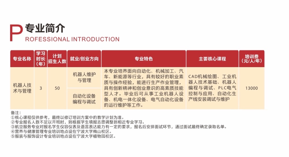 2021级“高技能创新创业班”机器人技术与管理专业招生简章